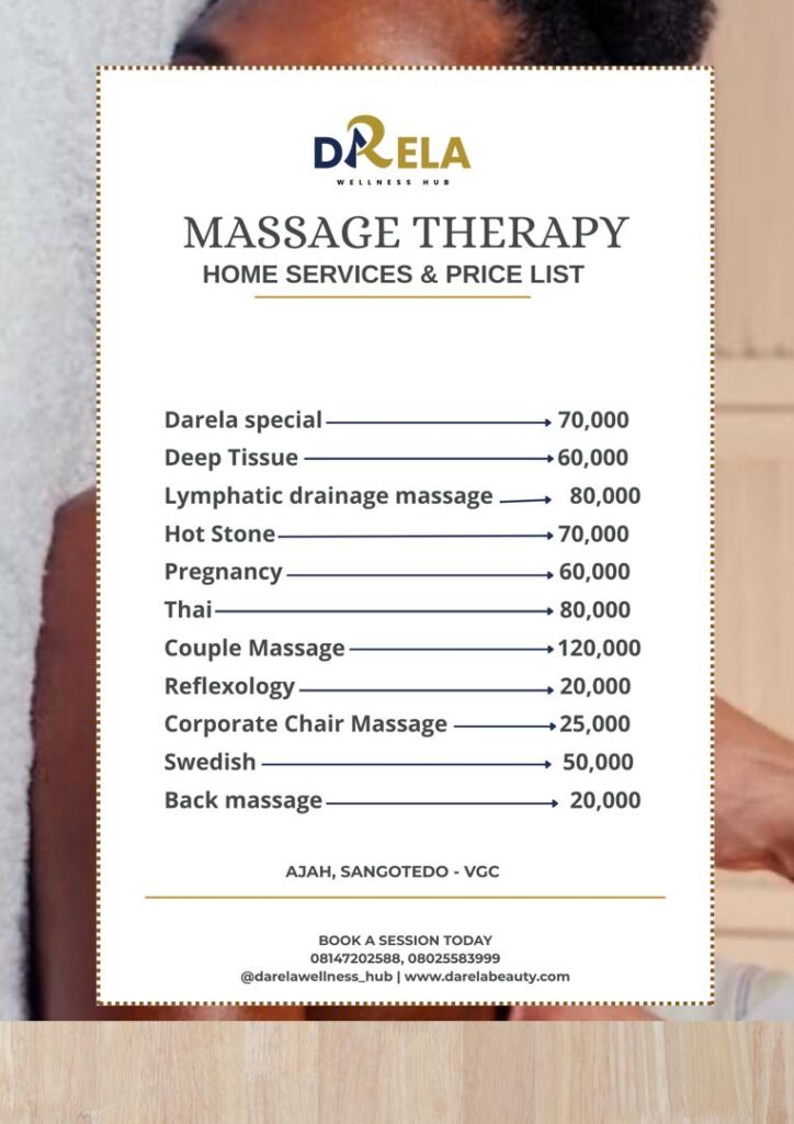 Our price list includes detailed rates for services at our luxurious spa outlet as well as our home service options.
